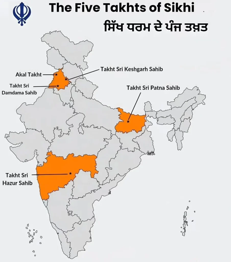 4. Takht Sri Akal Takht Sahib – This is the most famous Takht, located in the Golden Temple complex in Amritsar, Punjab, and is the seat of the Sikh temporal authority.